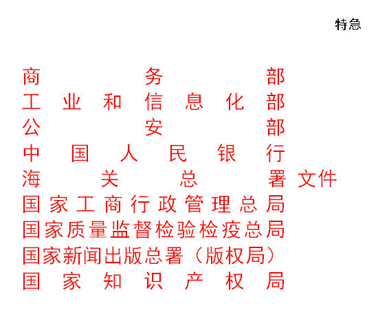 商务部 工业和信息化部 公安部人民银行 海关总署 工商总局